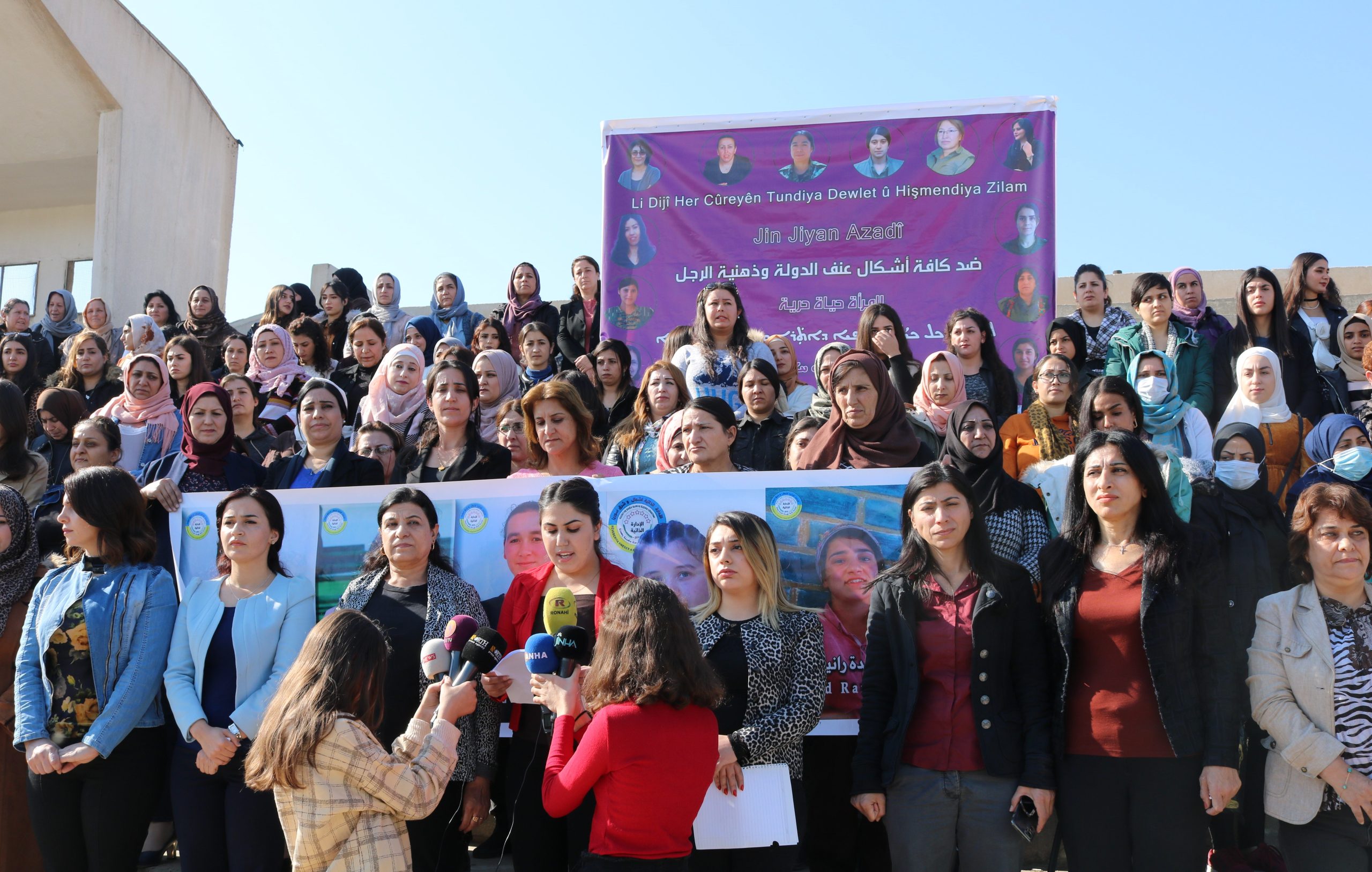 تحت شعار “ضد كافة اشكال عنف الدولة وذهنية الرجل…المرأة ـ حياة ـ حرية “، القت منصة الفعاليات المشتركة للحركات والتنظيمات النسائية في شمال وشرق سوريا بيانا يتضمن برنامج حملتها.