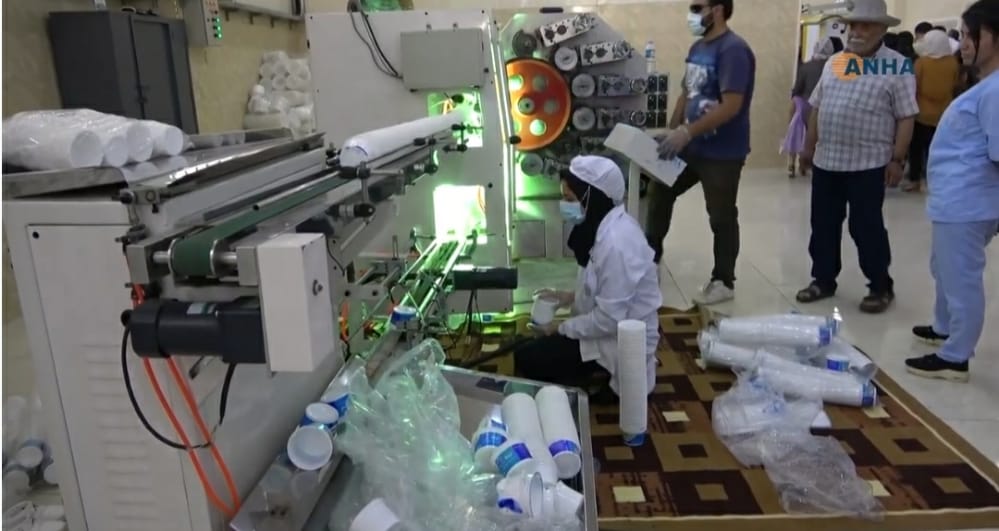 وعن آلية عمل آلاتهم تحدثت المهندسة الميكانيكية المشرفة على الآليات والأجهزة في المعمل فاطمة فرمان “إن العمل يبدأ بعد صيانة ومراقبة الأجهزة لإنتاج العبوات حسب المواصفات والقياس المطلوب، وطباعة اسم المعمل عليها وتغليفها عبر الأجهزة الموجودة لديهم”.