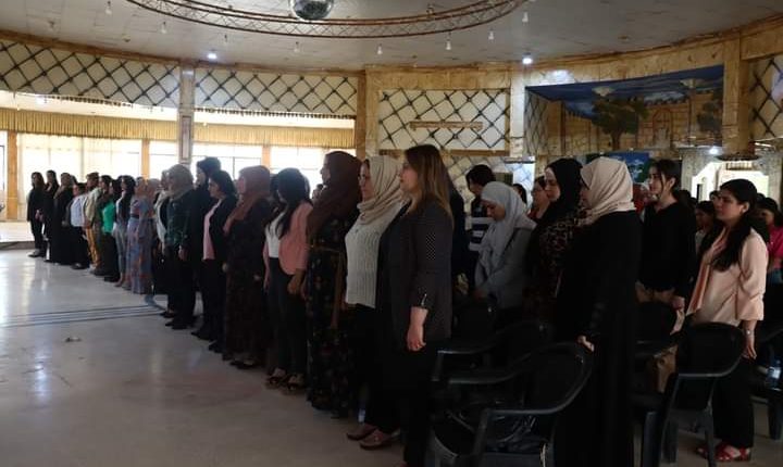 تحت شعار ” jin jiyan azadî ” ،نظمت منصة الفعاليات المشتركة للحركات والتنظيمات النسائية في شمال وشرق سوريا ،اليوم الأربعاء ٣١ أيار ،ملتقى خطابي في مقاطعة الحسكة لدعم ومساندة “ثورة الجدائل”في شرق كردستان وإيران ،بحضور العشرات من عضوات المنظمات النسائية
