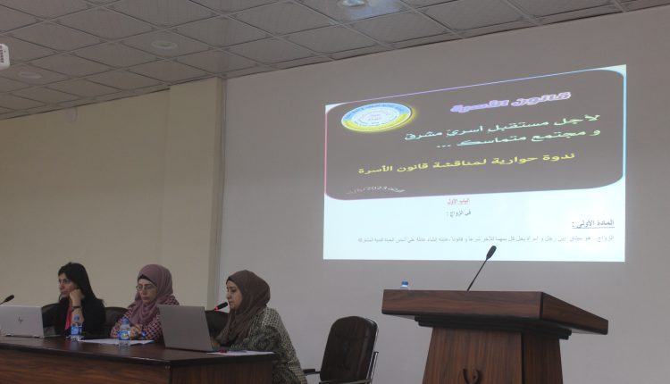 تحت عنوان (لأجل مستقبل أسري مشرق ومجتمع متماسك)، صباح اليوم 11 حزيران، وذلك في جامعة الشرق، حيث نوقشت البنود الموضوعة من قبل الموجودين وتم وضع بعض الملاحظات عليها من قبل الحضور.