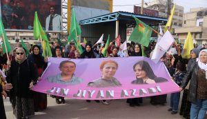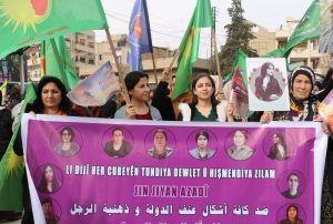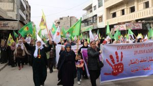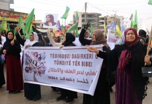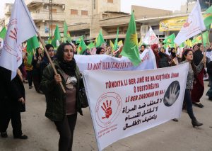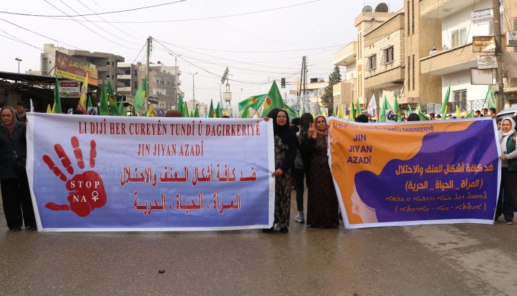 مسيرة جماهيرية نسائية نظمتها منصة الفعاليات المشتركة للحركات والتنظيمات النسائية في شمال وشرق سوريا ، بمناسبة اليوم العالمي لمناهضة العنف ضد المرأة، والذي يصادف اليوم 25 نوفمبر/ تشرين الثاني من كل عام.