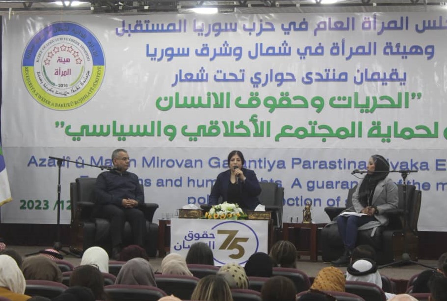 مشاركة مجلس المرأة في شمال وشرق سوريا في المنتدى الحواري الذي نظمه كل من مجلس المرأة العام لحزب سوريا المستقبل وهيئة المرأة في شمال وشرق سوريا تحت شعار: “الحريات وحقوق الإنسان ضمان لحماية المجتمع الأخلاقي والسياسي”