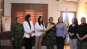 وانتهت الزيارة بتقديم المجلس باقة ورود لأسايش المرأة تقديرا واحتراما لجهودهم.