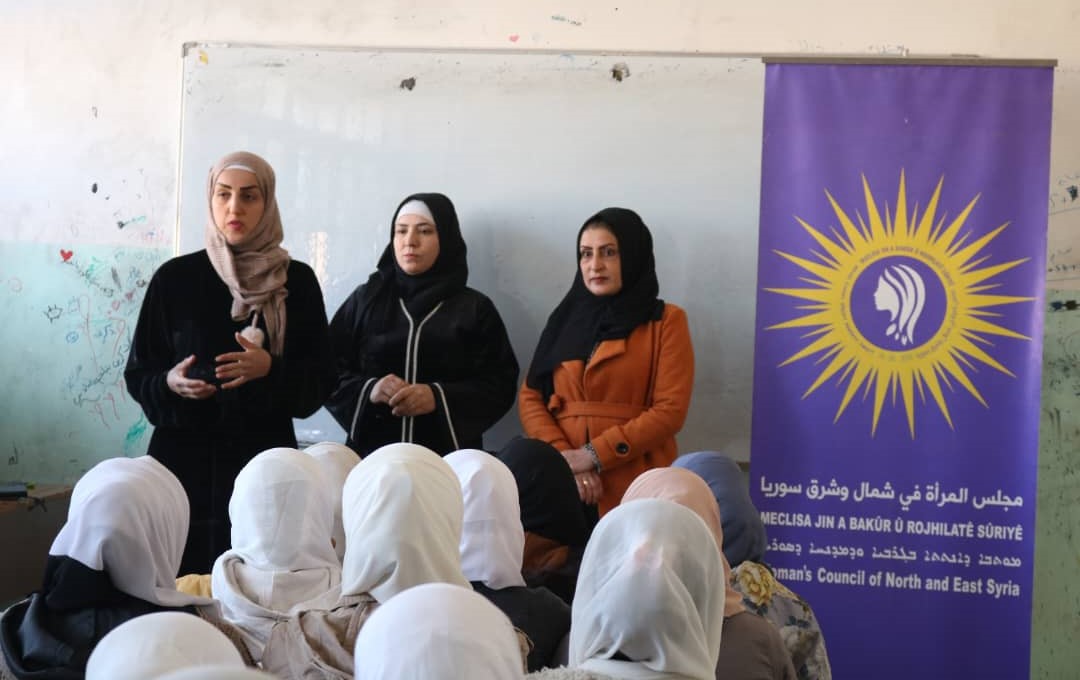 ضمن سلسلة فعاليات اليوم العالمي لمناهضة العنف ضد المرأة مجلس المرأة في شمال وشرق سوريا ينظم محاضرة في مدرسة ثانوية القحطانية