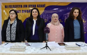 ١- المحور المجتمعي ،ألقته عضو المنسقية في مجلس المرأة في شمال وشرق سوريا “صباح شابو”.