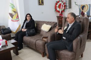 زار مجلس المرأة في شمال وشرق سوريا المكتب العام لاتحاد إيزيديي سوريا في إقليم شمال وشرق سوريا لتهنئتهم بافتتاح مكتبهم الذي يعد مظلة لكافة المؤسسات الإيزيدية في شمال وشرق سوريا