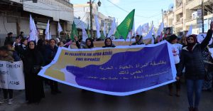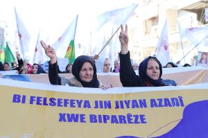 وشارك في المسيرة المئات من النساء والمواطنين وممثلات عن المنظمات النسوية والأحزاب السياسية ومؤسسات الإدارة الذاتية وعضوات مجلس المرأة في شمال وشرق سوريا.