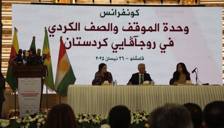 انعقد كونفرانس وحدة الموقف والصف الكردي في إقليم شمال وشرق سوريا، بتاريخ 26/4/2025، بعد حوارات مكثفة وجهود مشكورة من الأصدقاء والأشقَّاء، بمشاركة الأحزاب الكردية، ومنظمات المجتمع المدني، وحركة المرأة والمنظمات النسائية والفعاليات المجتمعية الكردية المستقلة من مختلف المناطق الكردية في سوريا، لاعتماد رؤية كردية موحَّدة حول بناء سوريا الجديدة والمشاركة في رسم مستقبلها وحلِّ القضية الكردية فيها، وذلك في هذه المرحلة الهامَّة من تاريخ البلاد، بعد ما تمَّ إسقاط نظام الاستبداد في دمشق في الثامن من كانون الأول العام ٢٠٢٤، هذا النظام الذي استباح حرية وكرامة الشعب السوري بكل مكوناته القومية والدينية والمجتمعية، ودمَّر البلاد على كامل الجغرافيا السورية، وقَتل وشرَّد وهجَّر الملايين من أبنائها، وبقدر ما قدَّم الشعب السوري من تضحيات لإسقاطه وإنهاء استبداده، وتحقيق حريته وكرامته.