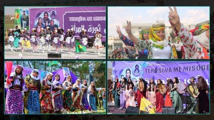 بنضال وعزم كبيرين، أوصلت نساء روج آفا وشمال وشرق سوريا المقاومة والنضال من أجل قضية الحرية إلى ذروتها، وحولن ثورة روج آفا اليوم إلى ثورة المرأة. رغم أنه تم الاعتراف به دولياً منذ السبعينيات، إلا أن جذور الحدث والرغبة في الاحتفال بهذا اليوم كيوم مشترك للنساء في جميع أنحاء العالم يمتد إلى القرن التاسع عشر. في 8 آذار/مارس 1857 في نيويورك، اتخذت الآلاف من عاملات النسيج إجراءات من أجل تحقيق بعض مطالبهن، وطالبن بثمانِ ساعات من العمل، وتحسين ظروف العمل، والأجر المتساوي. وسعى الموظفون إلى تفريق وحدة العمال واشتعلت نيران متعمدة في معمل النسيج مما أدى إلى مقتل 129 امرأة. في عام 1857، وبناءً على اقتراح من كلارا زيتكين والنضال المتواصل للنساء، أقرت الأمم المتحدة يوم 8 آذار/مارس اليوم العالمي للمرأة العاملة. قاومت النساء في القرنين التاسع عشر والحادي والعشرين جميع أشكال العنف والهيمنة. مع ظهور حركة التحرر الكردية، حاربت المرأة الكردية في جميع المجالات بفاعلية ضد كل أشكال الهيمنة والقمع. ومع مرور الزمن ساهمت في تجسيد يوم الـ 8 من آذار/مارس من خلال تأسيس القوات الخاصة بالنساء، وجعلن من هذا اليوم يوماً عالمياً بجدارة. استلهمت النساء في شمال وشرق سوريا نضالهن من نضال وانتصارات المناضلات أمثال شيلان كوباني وغولي سلمو وآرين ميركان وآفيستا خابور وآلاف المناضلات، ونتيجة لنضال المرأة اليوم أصبحت النساء في شمال وشرق سوريا القوة الرئيسية للحل. في جميع مناحي الحياة في شمال وشرق سوريا، أصبح للمرأة تنظيم وقوات وقياديات طليعيات للمجتمع الديمقراطي. نسعى في بحثنا هذا إلى إلقاء الضوء على نضال وصمود وشجاعة وبسالة النساء في شمال وشرق سوريا وكيف احتفلن بالثامن من آذار/مارس منذ 17 عاماً. في عام 1987 اجتمعت النساء لوضع مخطط يوم الثامن من آذار تطور وعي مقاومة المرأة في روج آفا في الثمانينيات. احتفلت نساء روج آفا لأول مرة باليوم العالمي للمرأة في 8 آذار/مارس عام 1987. في تلك السنوات كان النظام هو الحاكم والجميع في حالة من الخوف والرهبة من النظام. في ذلك العام، اجتمعت النساء الصامدات والمكافحات سراً في منزل في قامشلو للاحتفال بيوم 8 آذار/مارس وأظهرن للعالم أن النساء الكرديات في روج آفا لهن صوت، ومهما حدث سيحتفلن بهذا اليوم. بعد الكشف عن خطتهن احتفلن سراً في مجموعات صغيرة داخل المنازل. ناظلي كجل رمز 8 آذار عام 2004 تم الاحتفال بيوم الثامن من آذار/مارس للمرة الأولى على أرض روج آفا عام 2004 في قرية ترتب في مدينة قامشلو بشمال وشرق سوريا. في تلك الأيام لم يكن بوسع أي امرأة أن تخرج بحرية وتحتفل بيومها، لأن النظام كان يهاجم على الفور وكان النشاط يتعرض للتخريب. للاحتفال بهذا اليوم نظمت نساء روج آفا أنفسهن في حشود كبيرة وارتدين أزيائهن التقليدية وتوافدن إلى ميادين الثامن من آذار/مارس. النظام السوري وكما في كل مرة لم يتحمل هذا الأمر، وقمع فرحة النساء حيث تم إنهاء الفعالية بسرعة. تم اعتقال وتوقيف العديد من النساء في ذلك العام. ولا يزال مصير ناظلي كجل التي اعتقلها النظام مجهولاً. تم الاحتفال بيوم الـ 8 من آذار عام 2009 في ديريك لم تتخلى نساء روج آفا أبداً عن رغبتهن في الحرية. قبل تشكيل تنظيم النساء في روج آفا، كانت النساء تشاركن في العمل الجبهوي. في تلك الأيام، ورغم أن الوعي لم يكن متقدماً كافحت هؤلاء النساء بإرادة وعزم من أجل حرية المرأة. تأسس اتحاد ستار النسائي عام 2005 بفضل آلاف النساء والأمهات. أصبح للنساء الكرديات في روج آفا منظمة وبدأن بالمشاركة في جميع الفعاليات باسم اتحاد ستار ونظمن زيارات إلى جميع أنحاء العالم. وتحت رعاية اتحاد ستار احتفلت النساء الكرديات في روج آفا بيوم الـ 8 من آذار/مارس في مدينة ديريك في شمال وشرق سوريا. في ذلك الوقت هاجم النظام السوري مرة أخرى وخاضت النساء مقاومة لا مثيل لها ضد الهجمات واحتفلن بيومهن. رمز ثورة المرأة… كولي سلمو مع انطلاق الثورة في روج آفا، حدثت العديد من التطورات المهمة وأصبحت ال