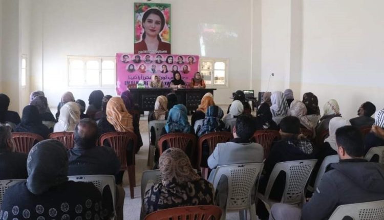 تحت شعار (معاً نحمي ثورتنا ونحرر أراضينا) قام مجلس المرأة في شمال وشرق سوريا اليوم بإلقاء محاضرة عن اليوم العالمي للمرأة، دعماً للمرأة في العديد من الجوانب الاقتصادية منها والثقافية والتوعوية، إضافة لعرض سنفزيون، وذلك في مكتب الرقة لمجلس المرأة في شمال وشرق سوريا.