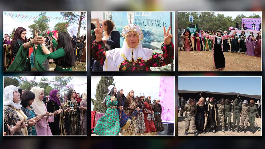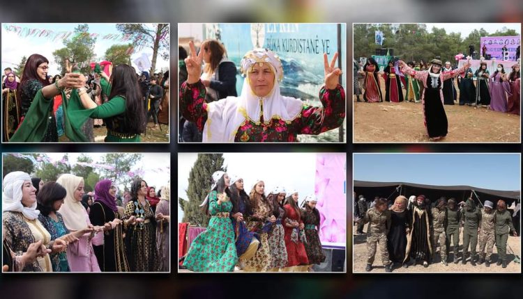 مركز الأخبار ـ تحت شعار “معاً نحمي ثورتنا ونحرر أراضينا”، احتفلت آلاف النساء في مناطق شمال وشرق سوريا بيومهن العالمي الثامن من آذار/مارس اليوم الثلاثاء. “على جميع نساء العالم الانتفاض والمطالبة بحقوقهن المشروعة” بعد تحضيرات مكثفة على جميع الأصعدة والمجالات، تحتفل اليوم 8 آذار/مارس نساء مقاطعتي عفرين والشهباء بيوم المرأة العالمي، وسط أجواء من المعنويات العالية وزغاريد النساء والأمهات وتعالي الهتافات التي تنادي بحرية المرأة والمجتمع، مرتديات الزي فلكلوري التراثي لثقافتهن من عربٍ، كرد وتركمان. وأكدت نساء عفرين والشهباء خلال مشاركتهن أن يوماً واحد من السنة لا يكفي ولا يعبر عن مدى النضال والكفاح الذي تقدمه المرأة ومن المهم أن تتحول جميع أيام النساء ليوم 8 آذار/مارس، مطالبات جميع النساء بالاتحاد بوجه المجتمع الأبوي وتحقيق الحرية للمرأة في العالم أجمع. الإدارية في مجلس المرأة الحرة للشهباء رحاب جبو قالت إن نساء شمال وشرق سوريا أثبتن جدارتهن وقدراتهن ضمن ثورة روج آفا، وأعطت المرأة من خلال مشاركتها في جميع المجالات والساحات بشمال شرق سوريا بصمة تاريخية وواقع لا يمكن نسيانه وإنكاره. وشددت على أن المرأة في شمال شرق سوريا بجميع مكوناتها وطوائفها وأديانها حققت إنجازات وتطورات لم تحققهها النساء في العالم من قبل “تكاتف النساء في هذا اليوم هو ثمرة نضال وتضحيات الشهيدات، لذلك نجدد عهدنا لهن باستمرار النضال حتى تحصل المرأة على كافة حقوقها”. في حين قالت عضو منسقية مؤتمر ستار أليف شيخ محمد أن الاحتفالات شهدت مشاركة كبيرة من نساء عفرين والشهباء “النساء أكدن من خلال هذا التجمع الحاشد والمعنويات العالية أنهن سيصعدن النضال للوصول إلى الحرية والسلام والديمقراطية في الشرق الأوسط كافة”. وأكدت أليف شيخ محمد على حديث سابقتها بأن يوماً واحداً لا يكفي “علينا أن نحول جميع أيام السنة ليوم 8 آذار”. بدورها تأمل عريفة جابو أن يكون هذا العام عاماً لتحقيق الأمان والسلام في الشرق الأوسط والعالم أجمع وتحقيق حرية المرأة من قيود وظلم واضطهاد المجتمع وعلى رأس كل هذه الأمنيات تحقيق الحرية الجسدية للقائد عبد الله أوجلان. وأضافت “على جميع النساء الخروج للساحات والشوارع والمطالبة بحقوقهن اليوم وكل يوم حتى الوصول إلى حرية جميع النساء وبناء مجتمع مسالم وديمقراطي”. نساء قامشلو فخورات بما وصلت إليه نساء المنطقة في ساحة ملعب هيثم كجو بمدينة قامشلو والذي تم تزيينه أمس الاثنين 7 آذار/مارس احتفلت المئات من نساء مدينة قامشلو باليوم العالمي للمرأة بمعنويات عالية، ووجوه ملأوها السعادة والفخر بما وصلت إليه المرأة في مناطق شمال وشرق سوريا. مدينة قامشلو التي يعيش فيها الكرد والعرب والسريان والأرمن منذ آلاف السنين تميز احتفالها كما جميع احتفالات شمال وشرق سوريا، فكل امرأة شاركت بالاحتفالات حضرت بلونها كما أضفى تنوع الثقافات في الملابس والرقصات جمالاً إلى الاحتفالية التي قررت فيها النساء التمسك بثقافتهن ولونهن. برنامج احتفالية الثامن من آذار/مارس تضمن تقديم عرض موسيقي من قبل فرقة الشهيد سردم التابعة للدفاع الذاتي، بينما قدمت الفنانة نسرين بوطان عدداً من الأغاني الفلكلورية، كما حضرت الأغاني الخاصة بيوم المرأة عبر فرقة المرأة الشابة، وقدمت فرقة جودي عدداً من الأغاني، أما الرقصات الفلكلورية العربية والكردية فكانت من نصيب فرقتي دليلا وتل براك، وفرقة قره جوغ. كلمة وحدات حماية المرأة YPJ هنأت النساء بيومهن وجاء فيها “نضال النساء الذي لا يزال مستمراً في كافة أنحاء العالم، نجده متجسداً بنضال مشترك على منحى تغيير القوانين التعسفية والقمعية، فالمرأة الكردية والعربية والأممية ونساء أفغانستان وجنوب أفريقيا وغيرهن يبدين قوة كبيرة في تحدي الذهنيات الذكورية، سواء تلك التي تمارس بأيادي العقليات الذكورية البحتة أو الدول المهيمنة والمحتكرة”. واعتبرت الكلمة أن “هذا اليوم لا يقتصر على القتل العا