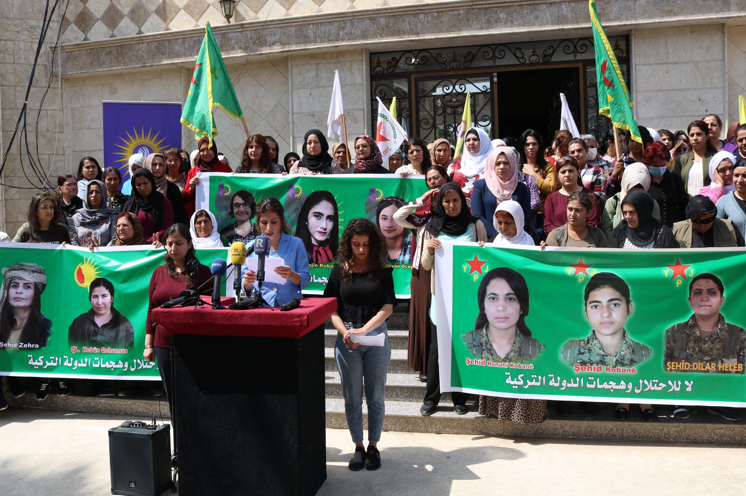 إننا كنساء شمال وشرق سوريا وتلبية لواجبنا الوطني ندعو شعوب المنطقة بالتكاتف لمواجهة أهداف ونوايا الدولة العثمانية الجديدة التي يقودها رجب طيب أردوغان والذي أسس جيشاً انكشارياً جديداً من الفصائل السورية المرتزقة لافشال مخططاته التي تهدف إلى ذرع بذور التفرقة والتشتت والعداء كما نطالب المجتمع الدولي بالخروج عن صمته إيزاء ما تفعله الدولة التركية المحتلة وما ترتكبه من جرائم بحق البشر والحجر في خرق واضح للاتفاقيات الموقعة بين كل من أمريكا وروسيا والدولة التركية كل على حدة كما ندعو المنظمات النسائية السورية والشرق الأوسطية والدولية والمنظمات الحقوقية ان تتحمل مسؤولياتها جراء ما يحدث في شمال وشرق سوريا من جرائم وانتهاكات بحق المدنيين من قبل الدولة التركية المحتلة والفصائل المرتزقة التابعة لها والضغط على الدولة التركية لانهاء احتلالها للمناطق السورية المحتلة والإسراع في تطبيق القرار الأممي 2254 لانهاء الأزمة السورية والاستعداد لمرحلة الانتقال السياسي في سوريا وفرض حظر جوي على مناطق شمال وشرق سوريا والتحقيق في الجرائم المرتكبة من قبلها وبإيعاز منها وتحقيق العدالة للضحايا وتأمين عودة آمنة للمهجرين منها وبضمانات دولية .