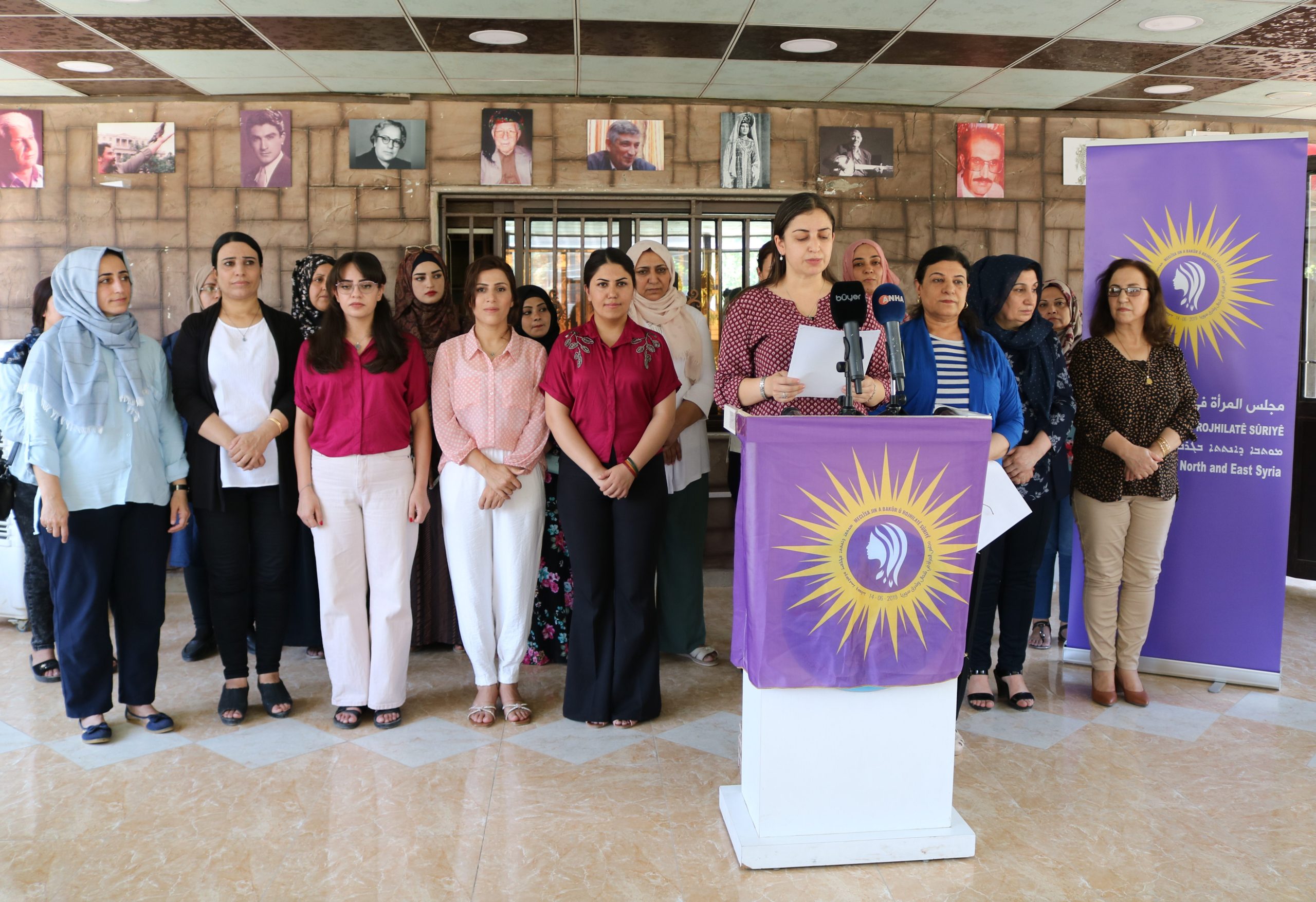 إننا في مجلس المرأة في شمال وشرق سوريا إذ ندين محاولات الدولة التركية لاحتلال وقضم المزيد من الأراضي السورية وإشاعة الفوضى والخوف في المناطق الآهلة بالسكان